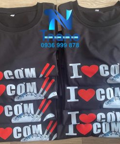 - Chuyên nghiệp: Logo và slogan của I Love Cơm được in trên áo thun giúp tạo ấn tượng mạnh mẽ với thực khách, thể hiện sự chuyên nghiệp của nhà hàng.